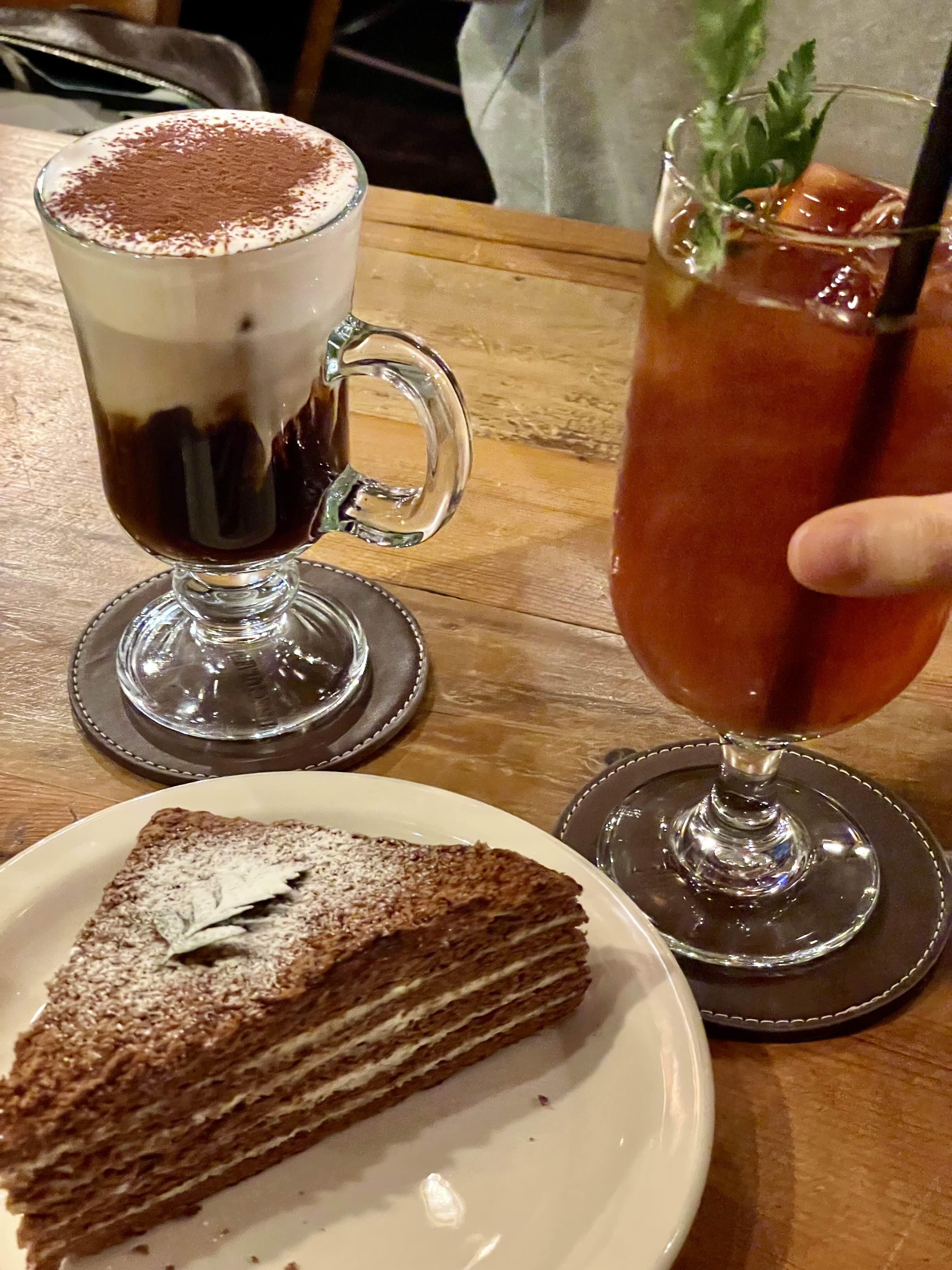 좌측 사진부터 발베니라떼, 코코아 케이크, 아이리쉬 커피, tea