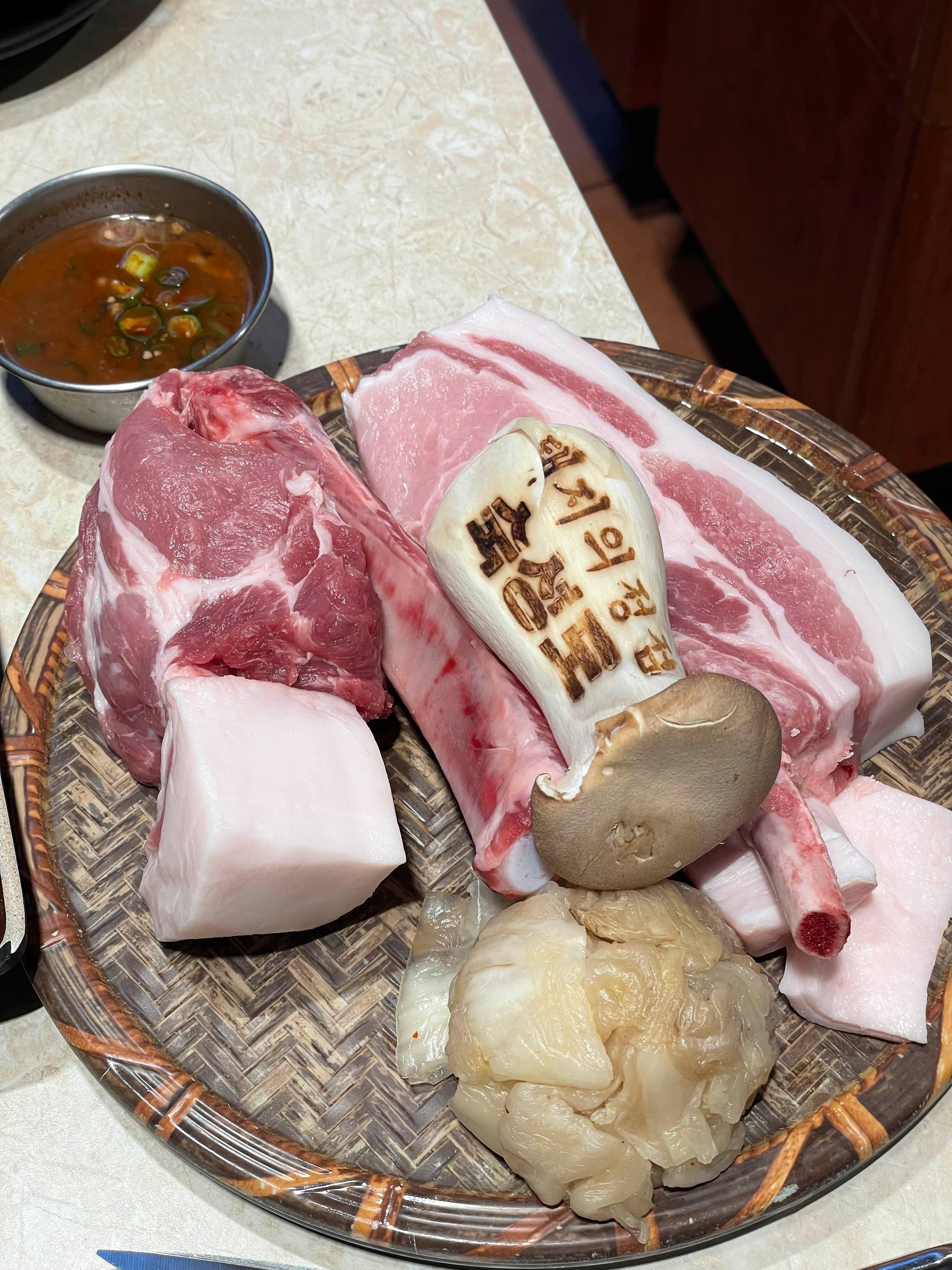 저희가 주문한 뼈등심, 뼈목살 총 2인분입니다.
