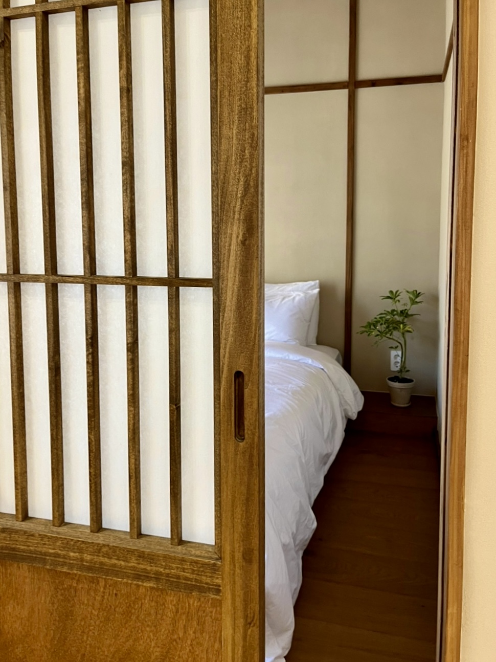 0123다다미방 스타일의 큰 침실 큰 방에는 다다미 스타일로 인테리어 되어있어요.