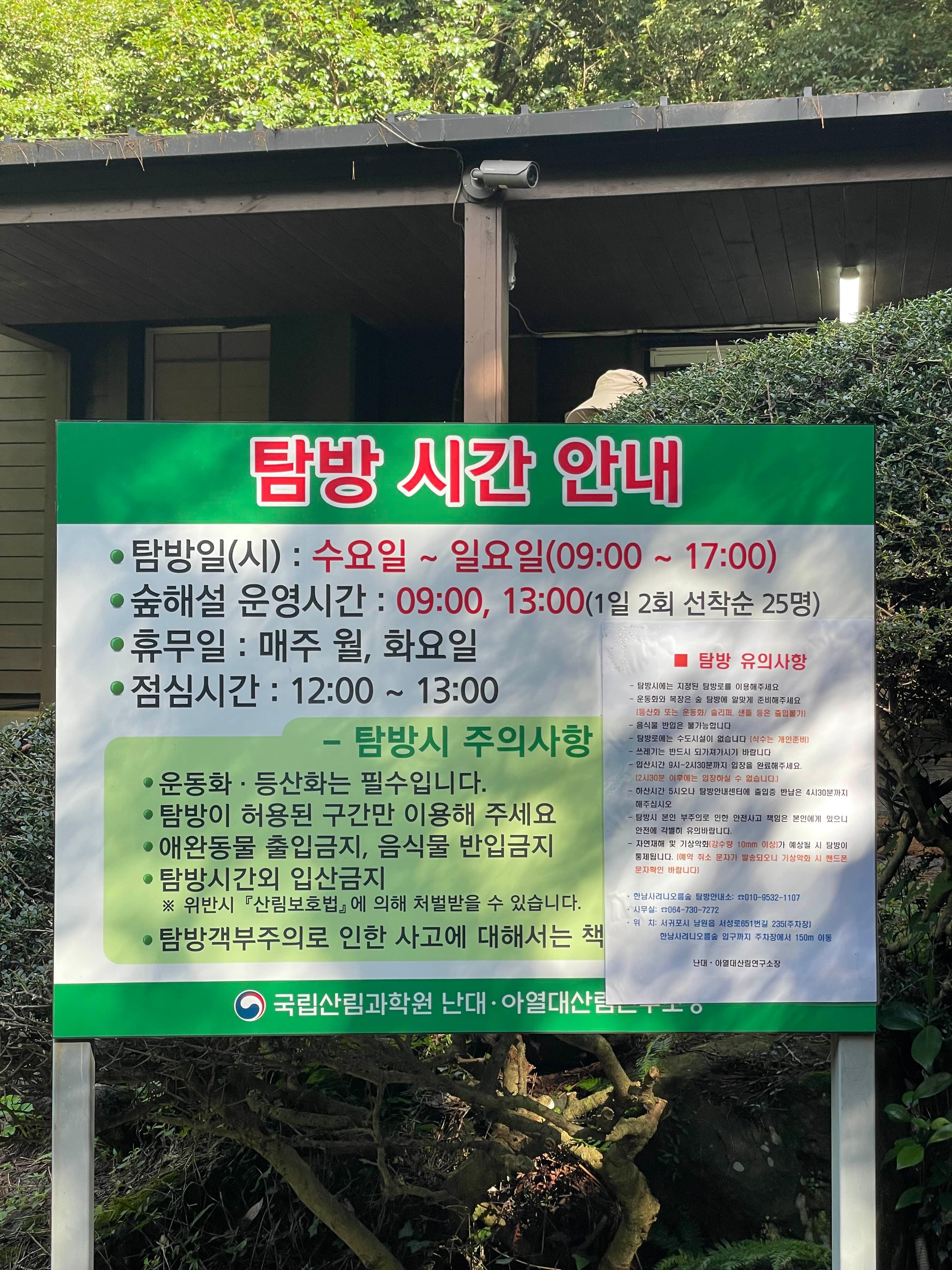 탐방 시간 안내 표지판이 있구요.